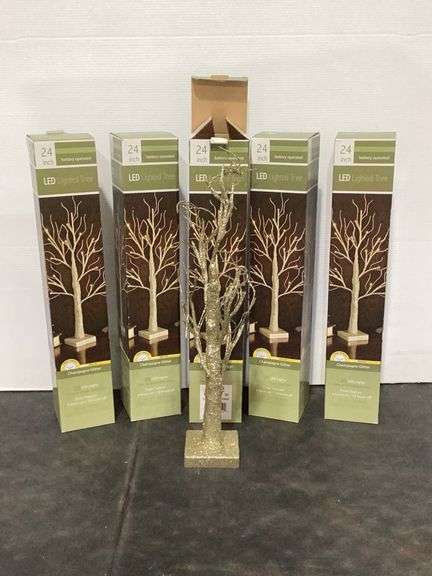 LOT 1761 - Five 24 inch LED lighted trees, champagne glitter, new in boxes
