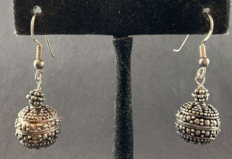 LOT 708 - Ball Earrings 11.8 grams Sterling Silver size 1 1/2"