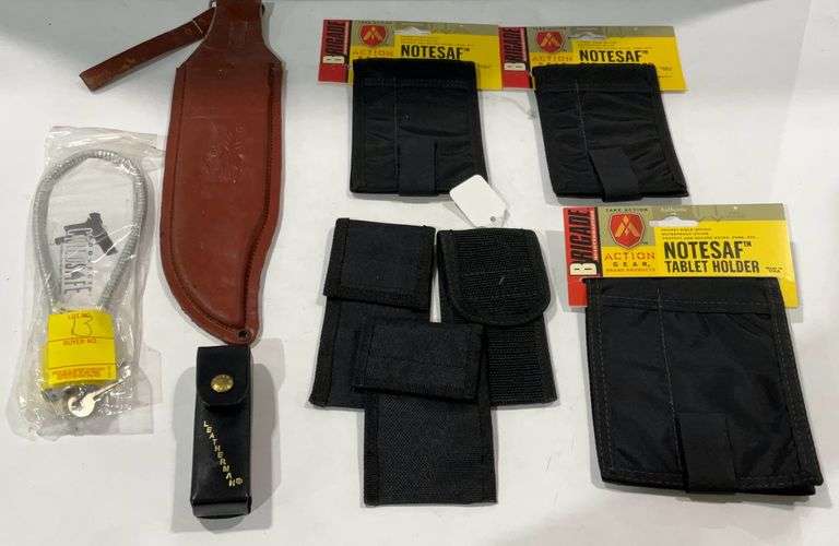 LOT 2306 - Notesafe tablet holders, sheaths, leather sheath, and gun safety lock