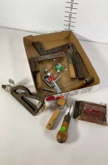 LOT 1876 - Flat of tools. Leather cobbler, ect.