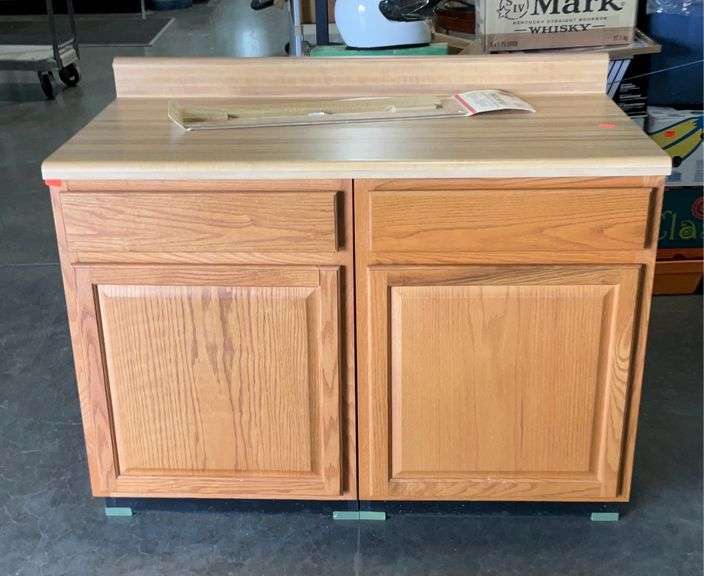 LOT 2019 - 4’x2’1” Counter top with 2 base cabinets 2’x2’x3’with end cap kit.unattached .