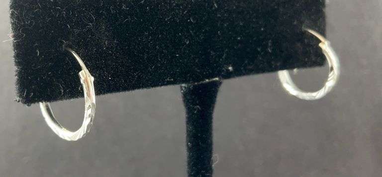 LOT 679 - Sterling silver 12mm French lock diamond cut hoop earrings .47g