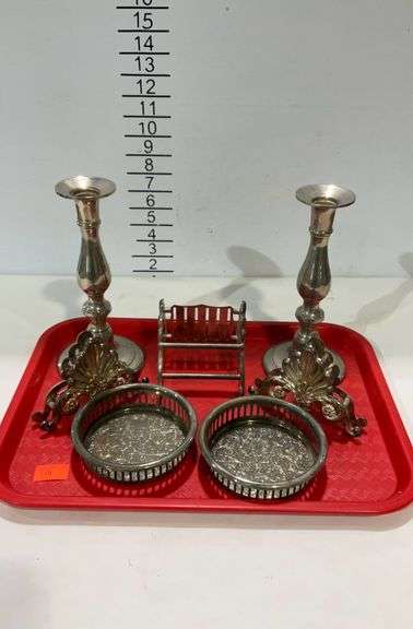 LOT 2456 - Silver Plated Service Accessory pieces, candle sticks, trays, holders, etc.