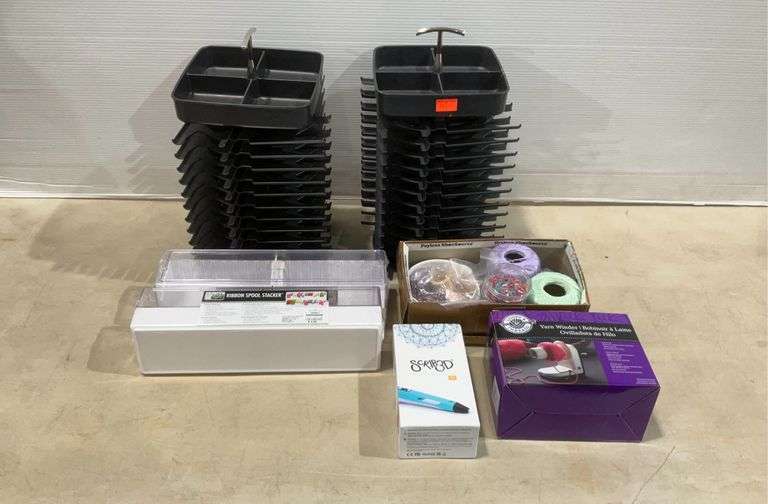 LOT 2574 - Craft group. Stampin up storage and organizers. Ribbon spool stackers, ect.
