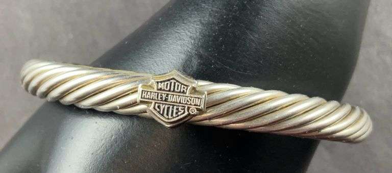 LOT 694 - Sterling silver Harley Davidson cuff bracelet , 43.57g