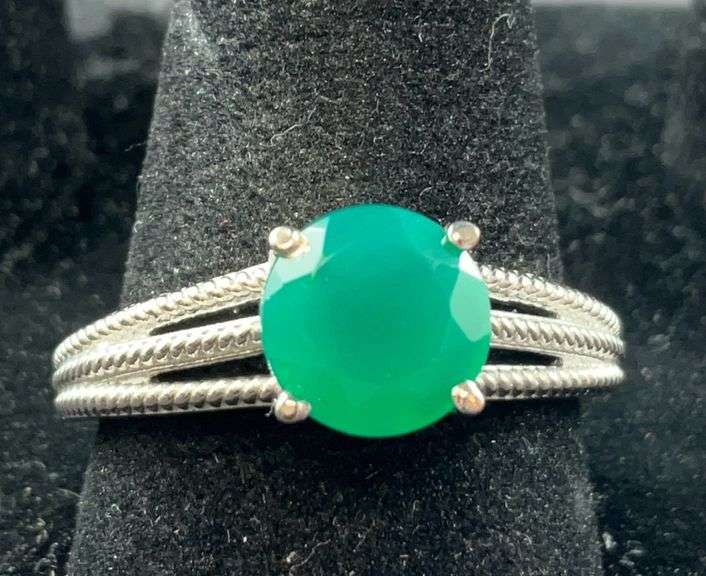 LOT 671 - 1.63ct Verde onyx solitaire stainless ring size 9