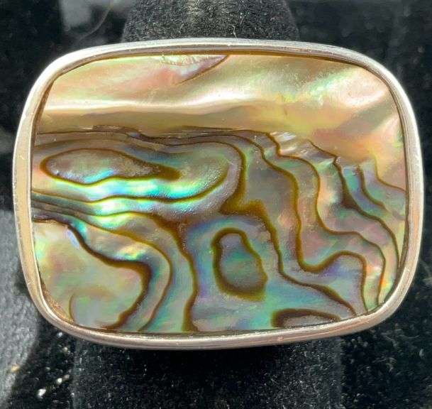 LOT 773 - Abalone Silver Ring 13.9 grams Sterling Silver size 7