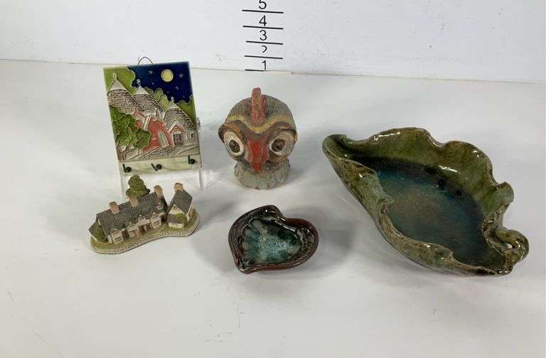 LOT 2007 - Miscellaneous group of unique / decorative items. Hand molded Rooster head signed, ashtray like sculpture and more.