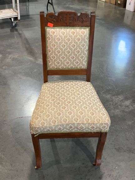 LOT 1652 - Single chair, carved detail, trim loose as shown