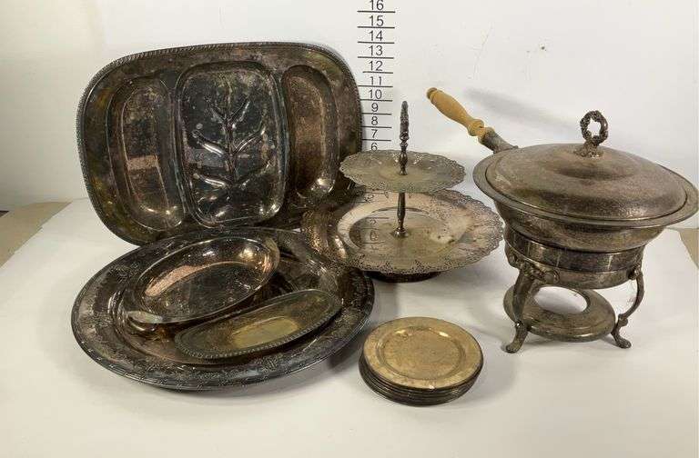 LOT 2161 - Group of serving ware. Needs some polishing.