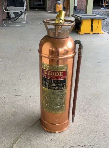 LOT 1303 - Kiddie copper fire extinguisher has been wired for a lamp, bracket loose