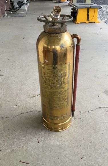 LOT 1302 - Defender copper fire extinguisher has been wired for a lamp, bracket loose, wire cut