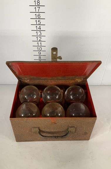 LOT 2464 - Shur-Stop kit throw fire extinguisher kit. Carrying case is very rusty and fragile