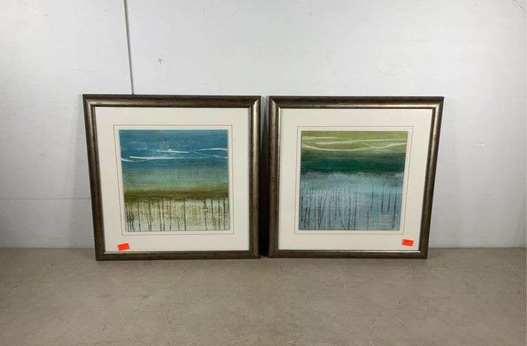 LOT 2089A - Pair of framed abstract decor prints, 19”