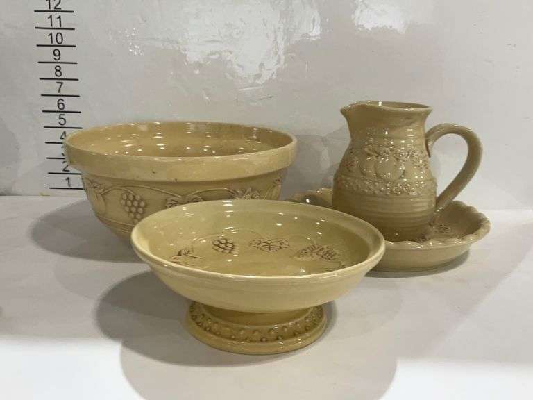 LOT 1653 - 4 pottery service pieces: pitcher , bowls, stand