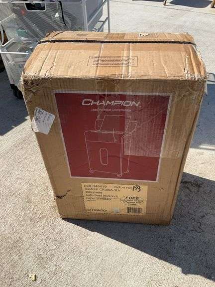 LOT 4013 - Champion 100 sheet auto feed micro cut paper shredder. New