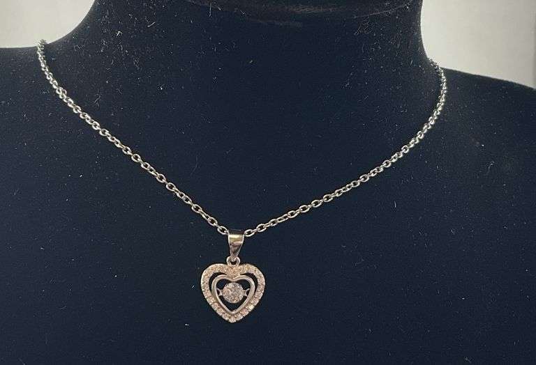 LOT 688 - Sterling silver .75ct simulated diamond dancing stone heart pendant with 20in stainless necklace