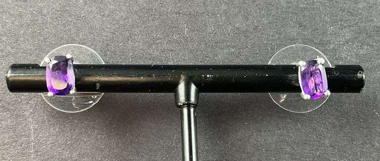 LOT 686 - Sterling silver .95ct amethyst solitaire stud earrings