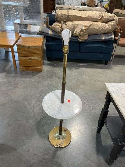 LOT 1619 - Mid Century modern floor lamp with marble shelf 4’5”