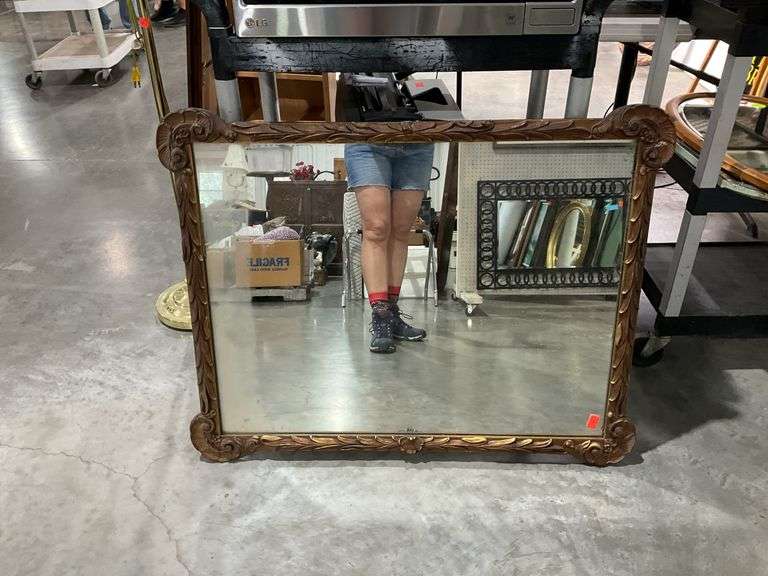 LOT 3047 - Antique wall mount mirror, 38.5x30.5, carved details