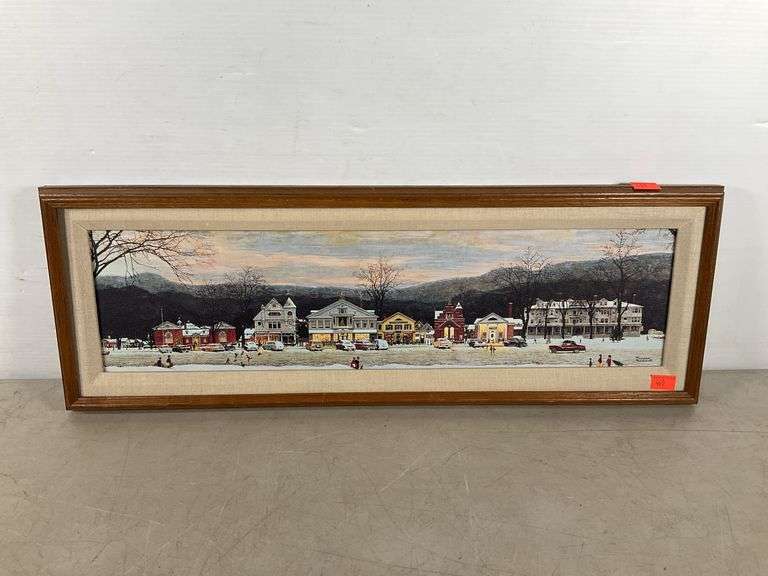 LOT 2339A - Framed Norman Rockwell print on canvas, “Main Street, Stockbridge”, 31.5x11”