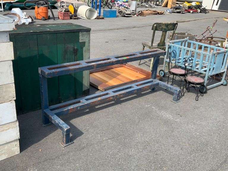 LOT 142 - Heavy steel made rack, 74x24” high, bolt to floor type