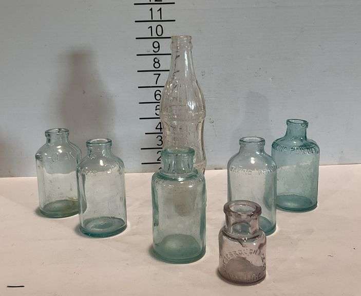 LOT 2209 - Baking powder, Vaseline, and Try -Me glass bottles. Some chipping.