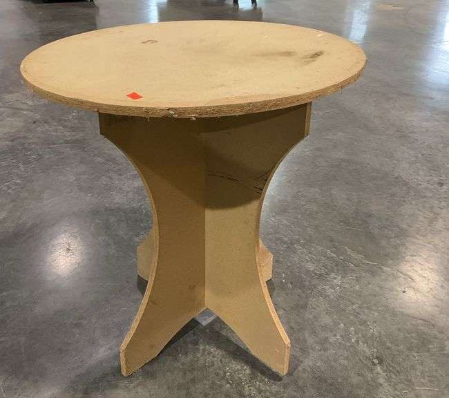 LOT 1545 - Press-wood table, 30”dia, table is warped and has some water damage