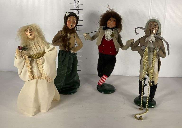 LOT 2008 - Byers Choice Mr. Fezziwig, Marley’s Ghost, Spirit of Christmas Past, and The Caroler.