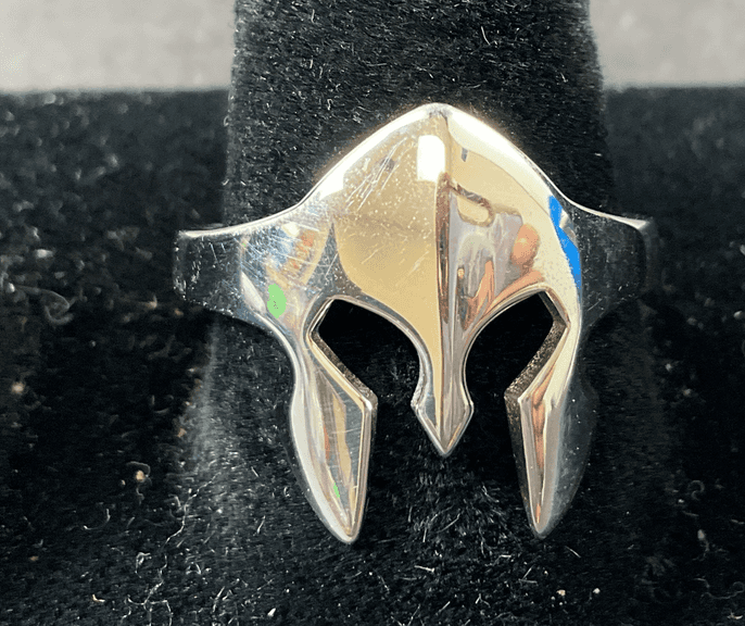 LOT 629 - Sterling silver Spartacus mask ring size 11