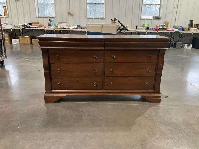 LOT 1602 - Kincaid Laura Ashley Home dresser 8-drawers, metal drop handles, top drawers are velvet lined, 70”L x 20”W, some wear from use