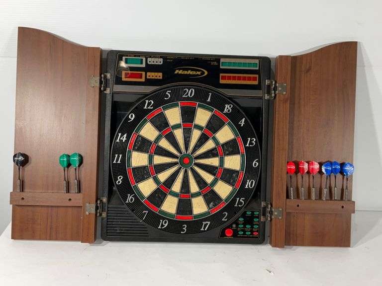 LOT 3012 - Halex dart board cabinet, electronic, may need battery, seller code LOS
