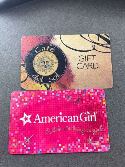 LOT 700 - Two gift cards American girl $40 balance and Cafe del sol $9.77 balance