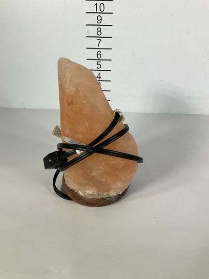 Himalayan salt lamp featuring a natural pink salt crystal design, mounted on a base. Includes an attached power cord for functional use. Suitable for ambient lighting or decorative purposes.
