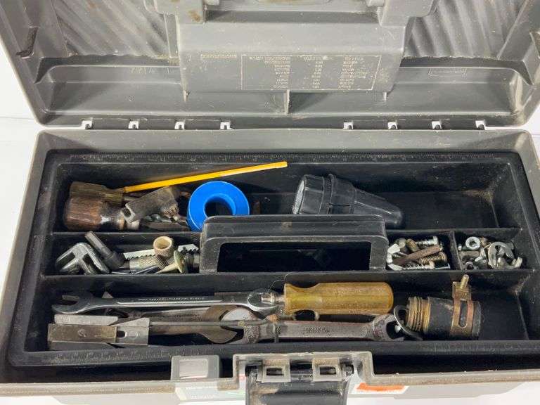 LOT 2010 - Rubbermaid toolbox with a assortment of tools and hardware