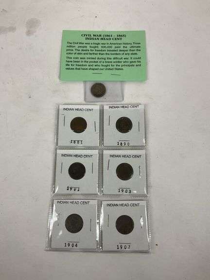 LOT 835 - Seven Indian head pennies 1863, 1881, 1890, 1901, 1903, 1904, and 1907