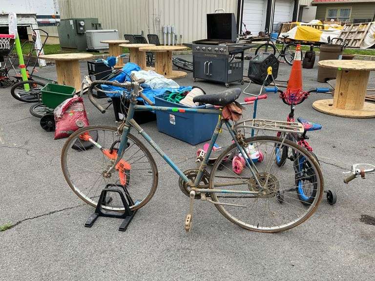 Panasonic Sport 1000 road bicycle featuring a lightweight frame, drop handlebars, and a rear-mounted rack. Visual signs of wear apparent on the frame, handlebars, and wheels.