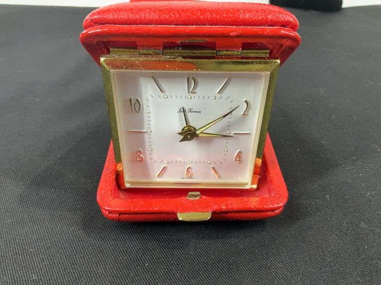 LOT 615 - Seth Thomas Germany alarm clock in red leather case