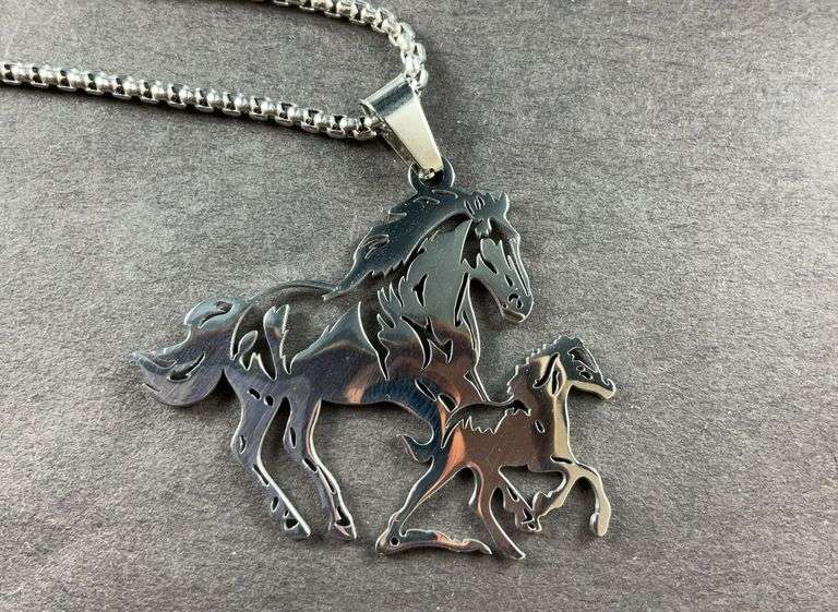 LOT 685 - Horse and pony 24in stainless pendant necklace