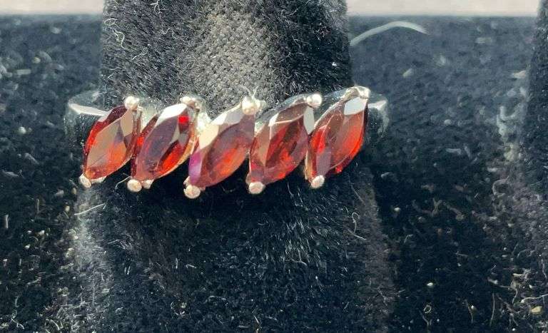 LOT 683 - Mozambique garnet 5-stone stainless ring size 9