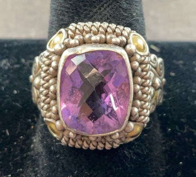 LOT 790 - 925 & 18K Amethyst Ring Signed BA Indonesia 12.7 grams Silver & Gold size 8.25