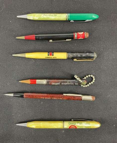 LOT 696 - Six mechanical advertising pencils , includes Westminster, trust company, kendall oil, the Bagby furniture, Co., summer Bros, swigart Assoc, and omega plant farms