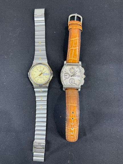 LOT 629 - Omega Quartz Wristwatch and Gruen Chronograph Watch with Leather Strap, both running