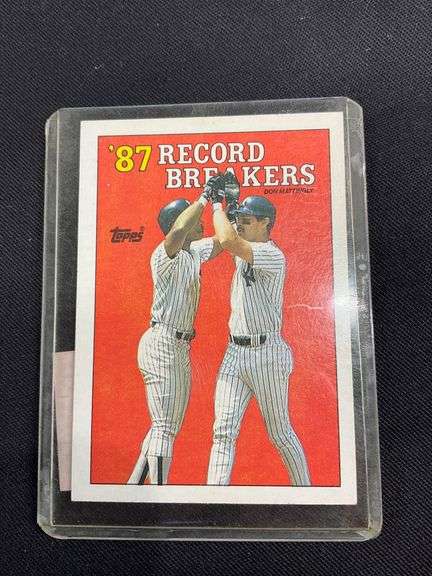 1988 Topps '87 Record Breakers baseball card featuring Don Mattingly celebrating his sixth grand slam of the 1987 season. Card number 2, manufactured by Topps Chewing Gum, Inc. Printed in the USA. Encased in a protective sleeve.