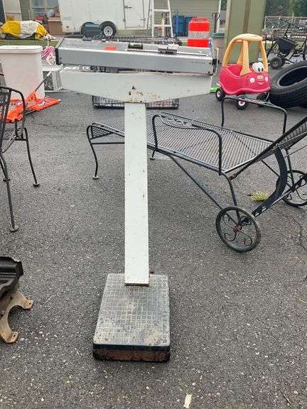 Health o Meter doctor's scale with a weight capacity of 350 pounds. Features include a zero balance adjustment mechanism and an analog sliding weight beam. Designed with a sturdy base and metal construction. All components of machine are here, the item will need a little recalibration for accurate weight.