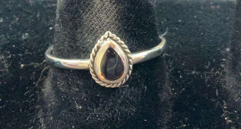 LOT 677 - Sterling silver pear cut black agate ring size 10