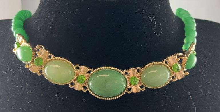 LOT 657 - Green aventurine beaded necklace 20in goldtone