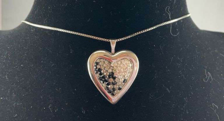 LOT 619 - Black and white Austrian crystal heart locket pendant on a sterling silver chain 18in