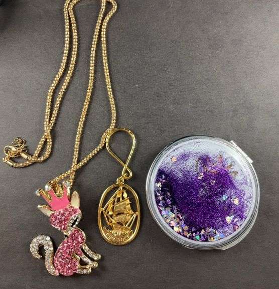 LOT 625 - Austrian crystal fox necklace and mirror compact plus a dry dock keychain