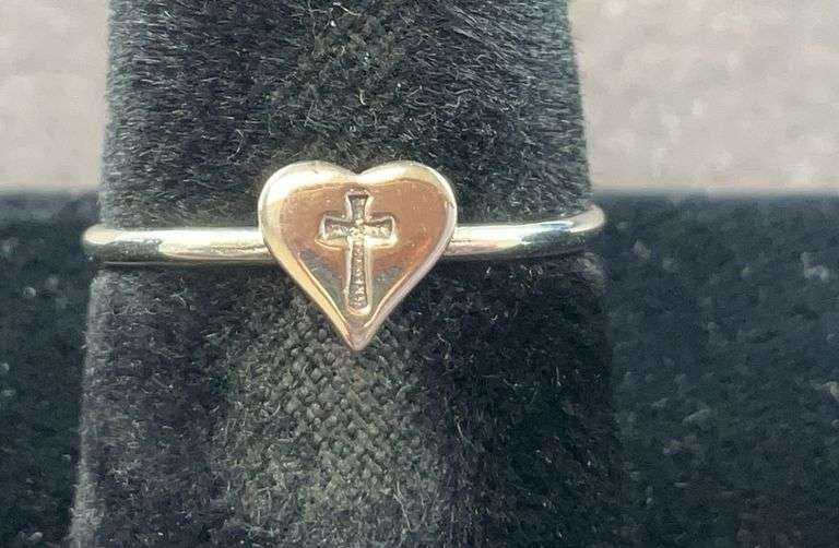 LOT 691 - Sterling silver cross in heart size 5 ring .80g